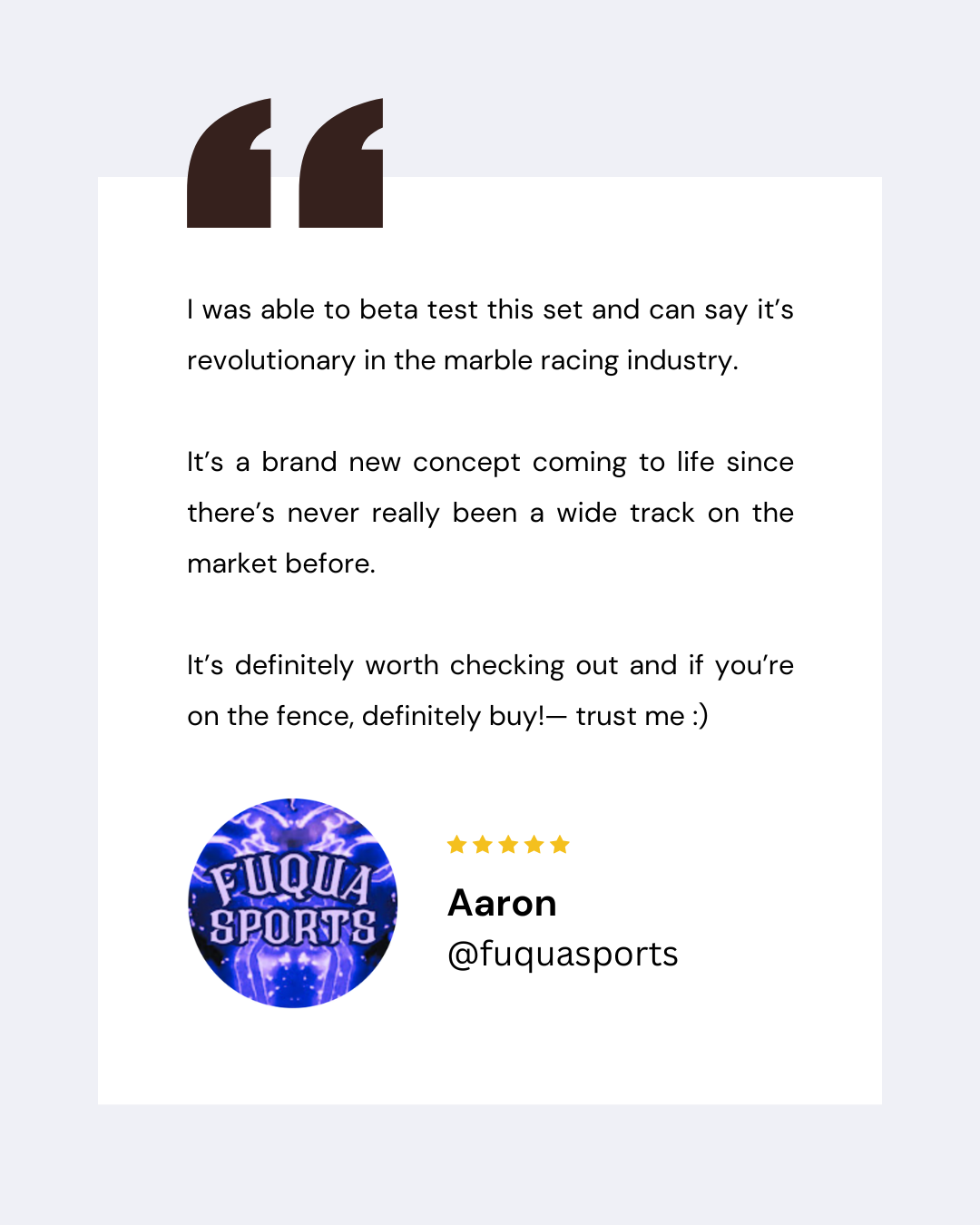 Our main sets let marbles pass anywhere, turning every race into unpredictable, edge-of-your-seat fun.