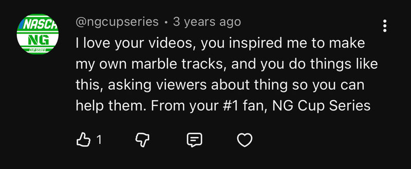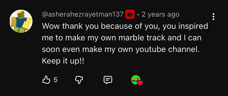All our tracks are 10cm wide, that's equivalent to 5 regular-sized marbles racing side-by-side.