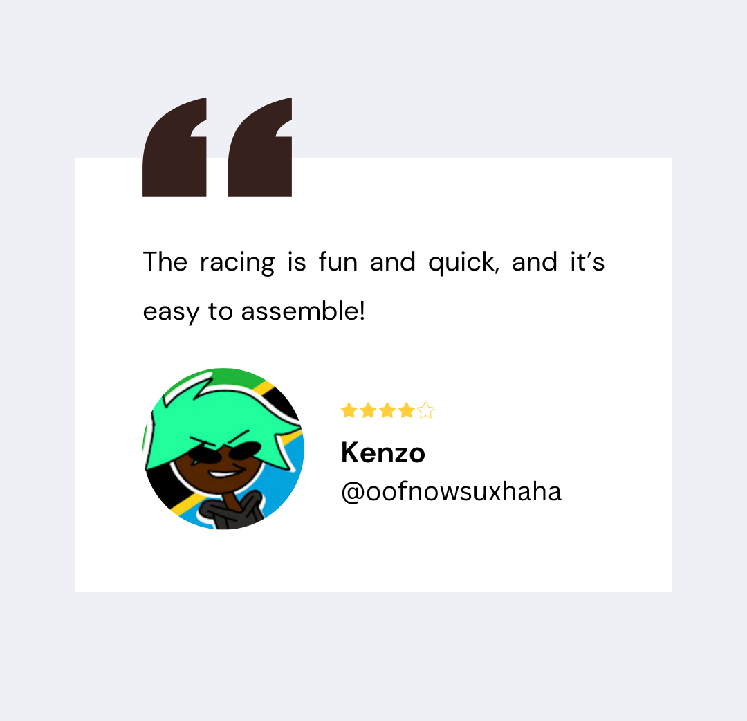 Easy-to-customize tracks keep kids and adults excited race after race.