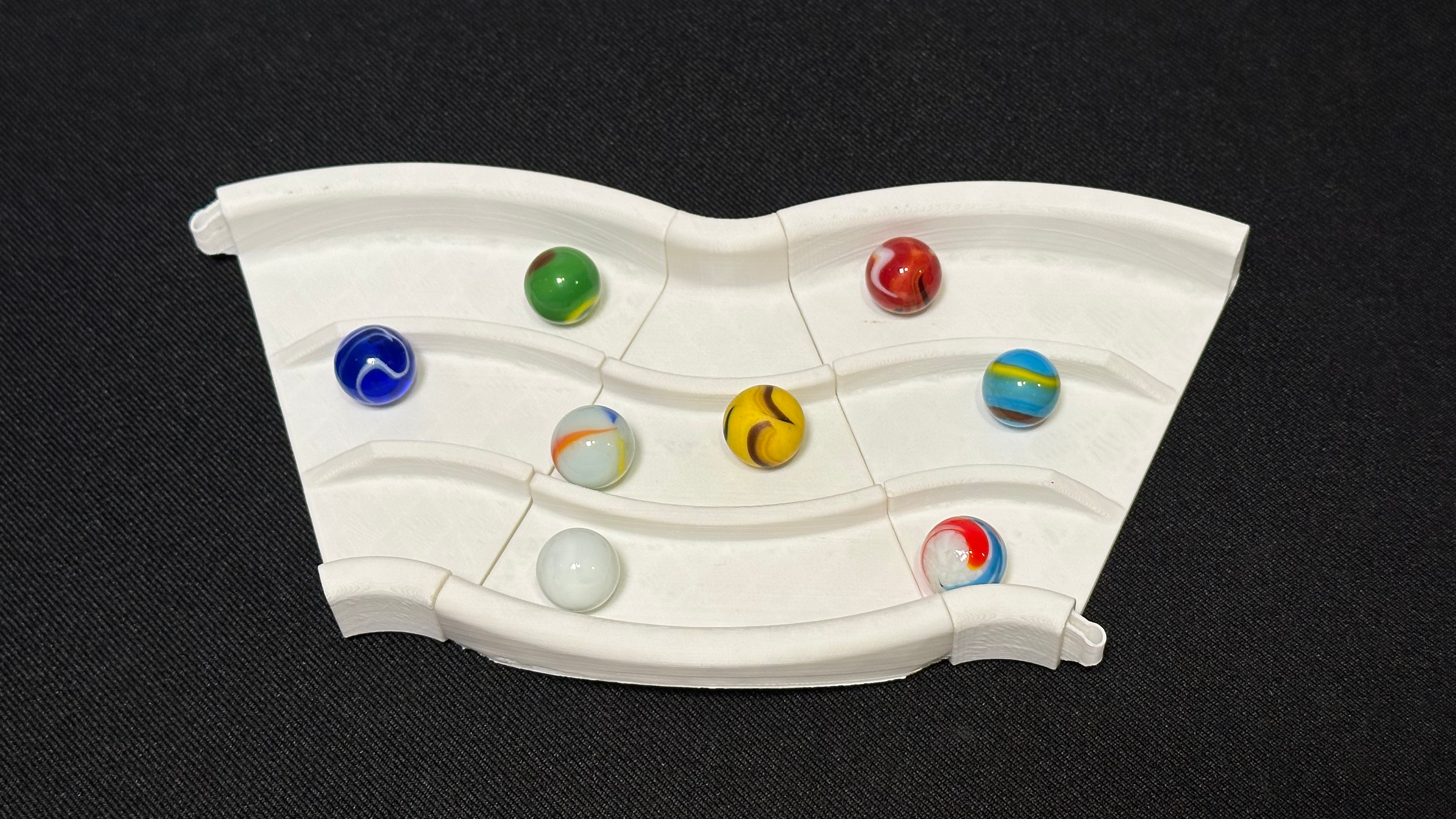 The Marble Autobahn is 3D printed with PLA plastic filament.