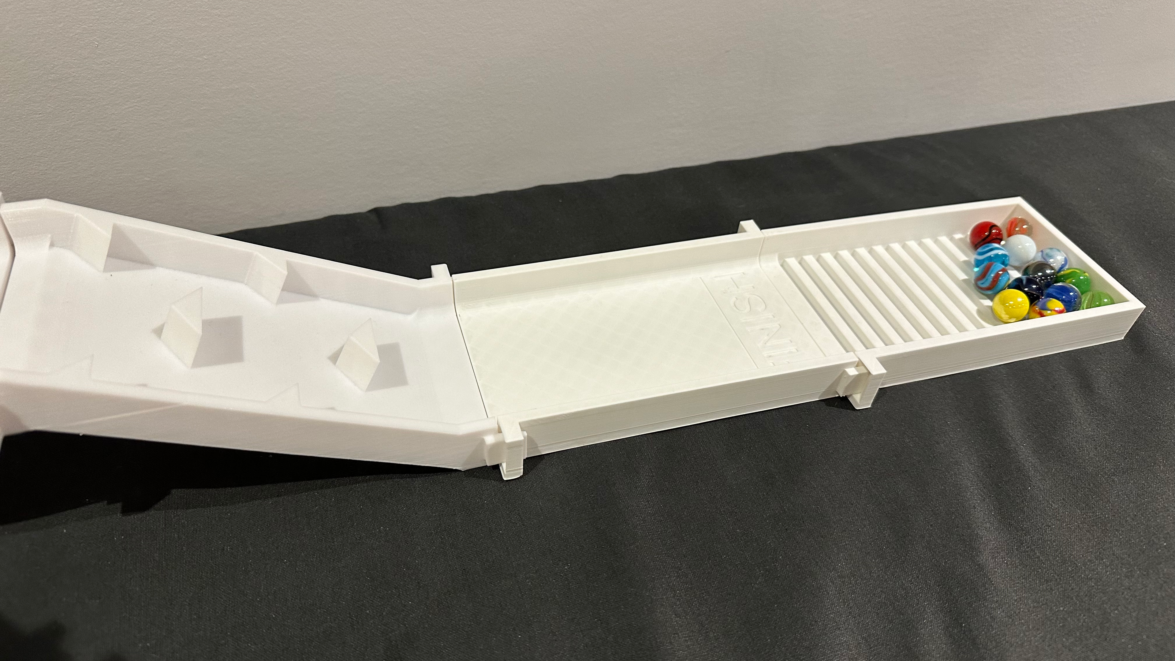 Don't want your marbles to run off the track? Our modified Finish Line Track has a dedicated catcher at the end to catch the marbles, without it impacting the results of a race!