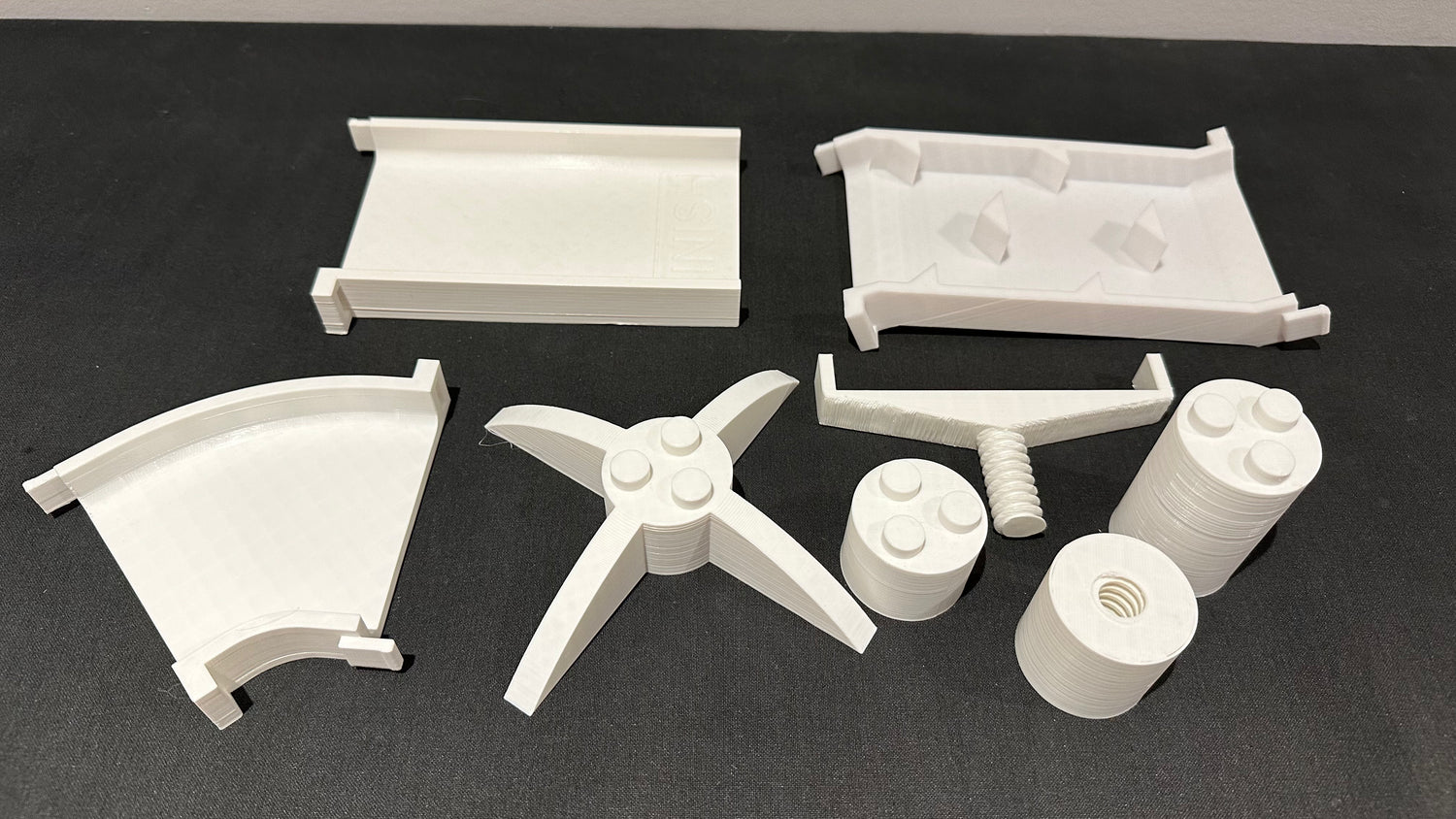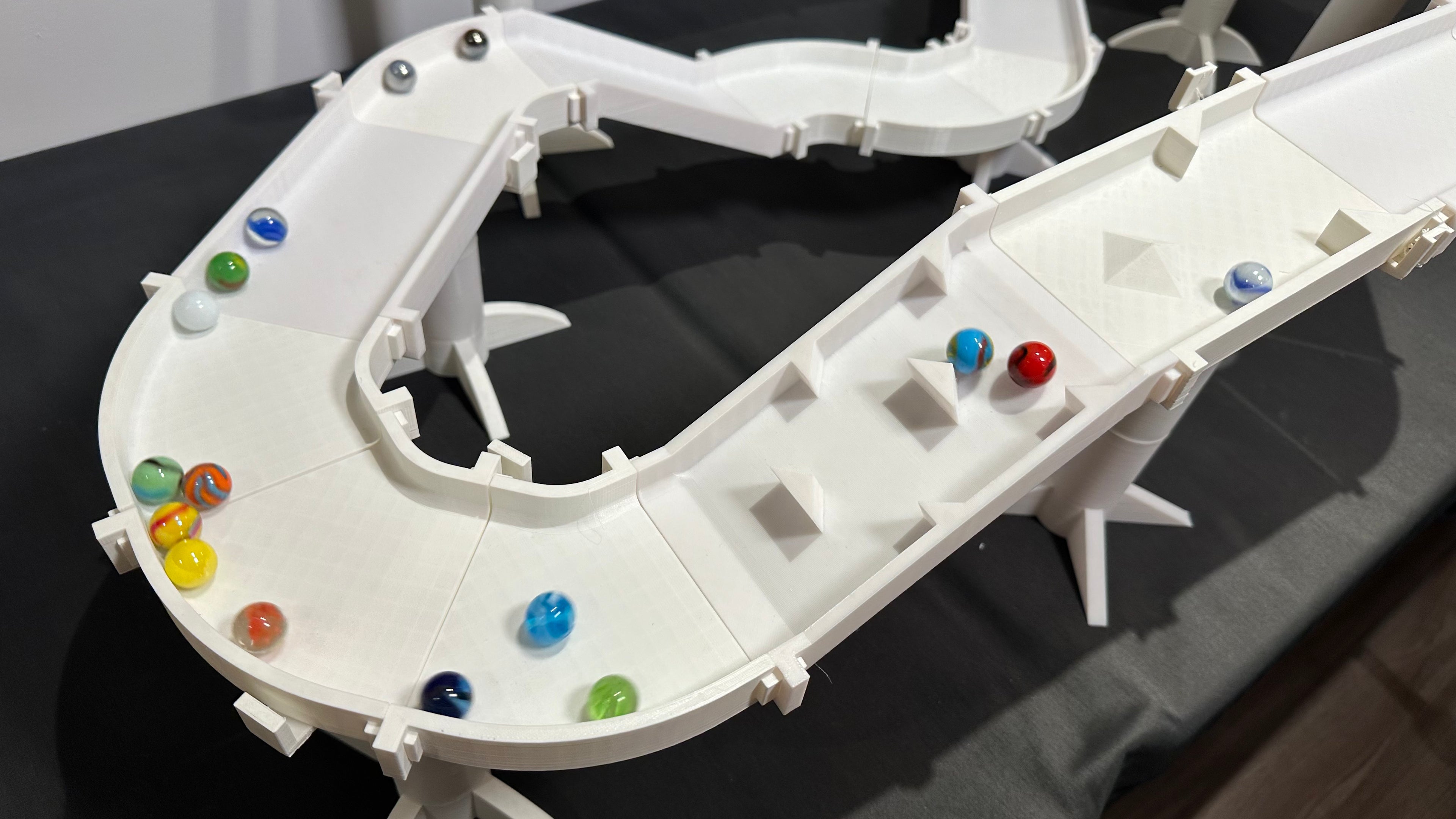 The Marble Autobahn is 3D printed with PLA plastic filament.
