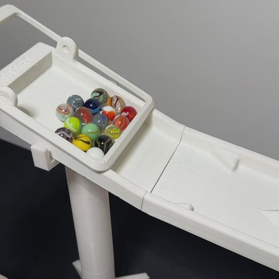 Get ready for the ultimate fun with our biggest set yet, featuring special chicane tracks, and a finish line catcher to catch all your marbles!