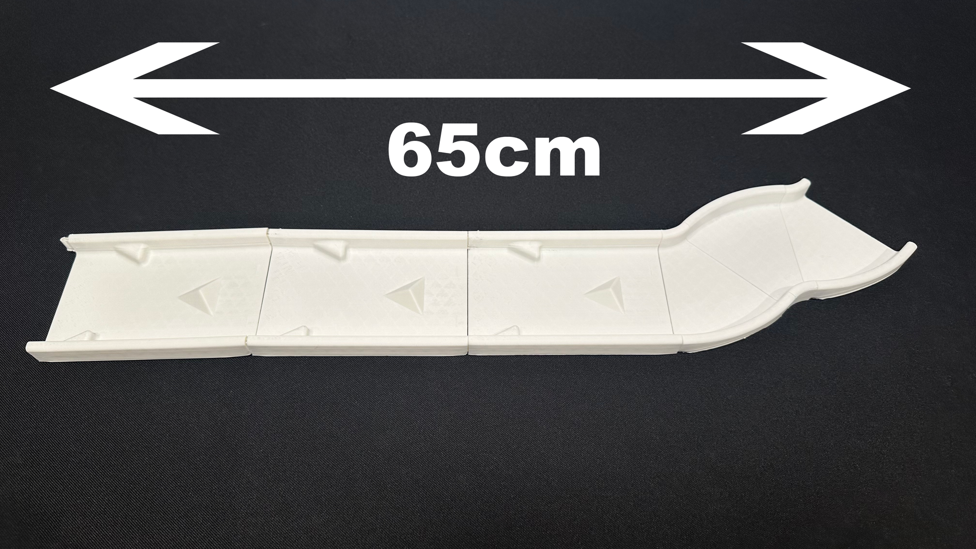The straight tracks are 13cm long, while the sloped tracks are 15cm long and 5cm high.