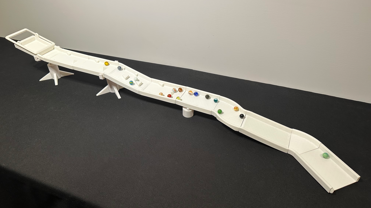 The Marble Autobahn is 3D printed with PLA plastic filament.
